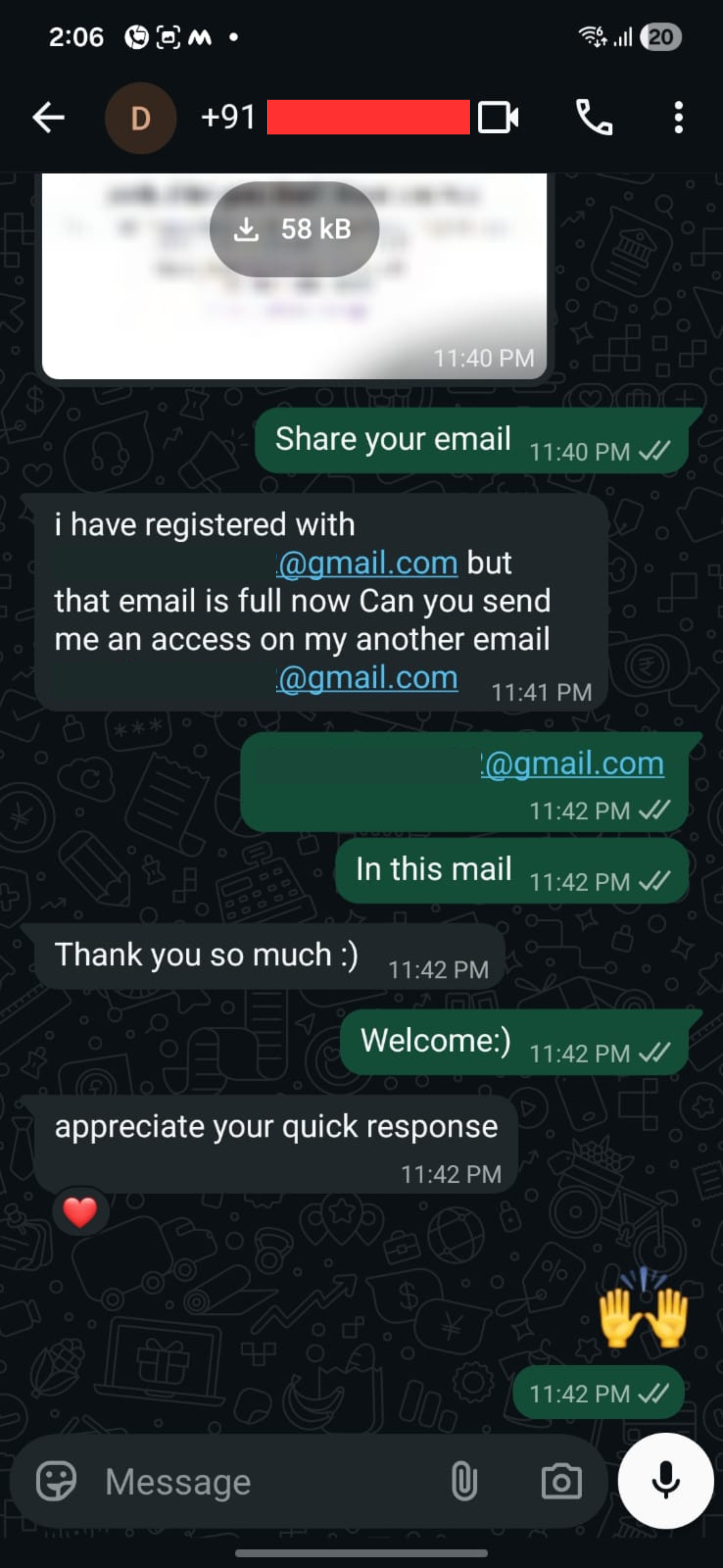 We provide 24/7 Support On WhatsApp. If You face Any Issues, Simply message Us At +91 9754738196 And We will resolve Them Quickly.